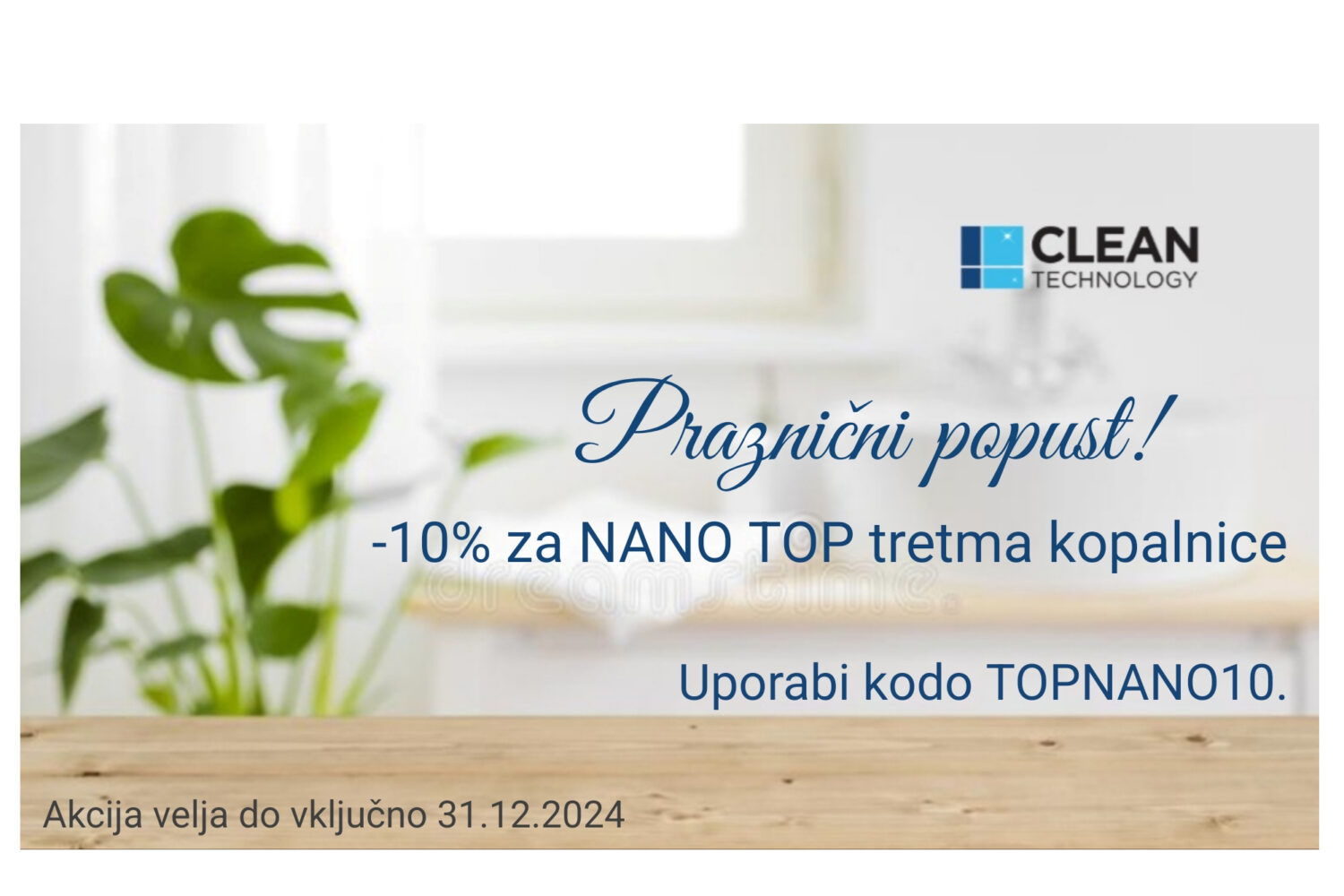 Prav tako vam do vključno 31.12.2024, s kodo TOPNANO10, pripada popust na popolno nano zaščito vaše kopalnice.